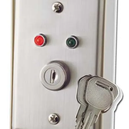 - Remote key station with latched or momentary dry contact for security system on/off control.