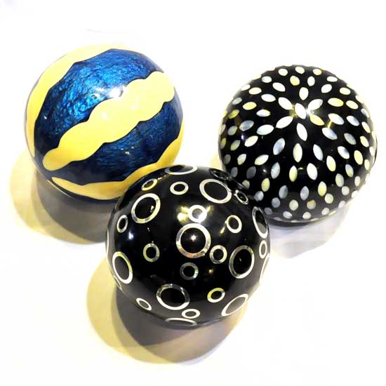 The ball-shaped decoration is finely crafted with top-quality resin to bring out the perfect shine. Meticulous handicraft is revealed without reservation by the scrumptious painted details and the precisely shaped construction. The intriguing patterns display a sense of elegance to adorn your home. Show off your extraordinary taste in home furnishing with this resin decoration.