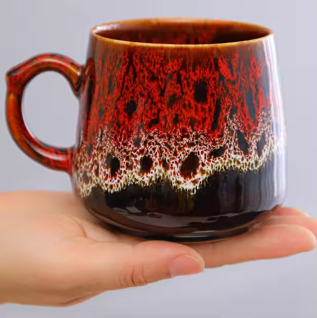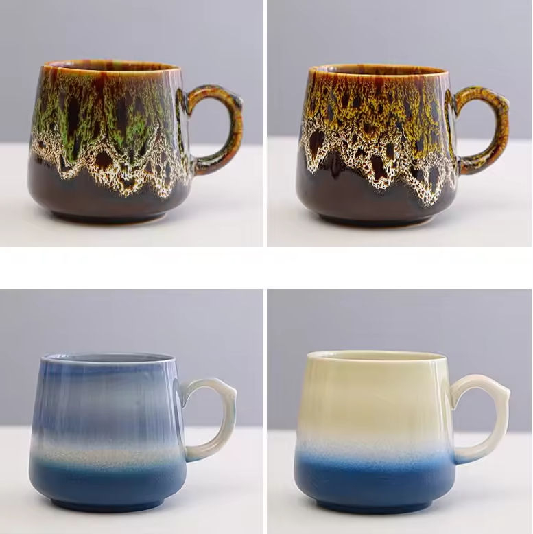 Retro Kiln-Changed Ceramic Coffee Mug Activated Glaze Reusable Sustainable Food Safe Multi-Color Custom Logo Option Home Office