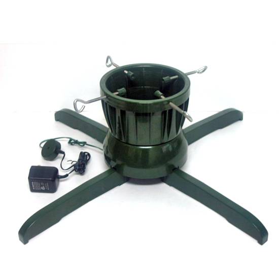 This is a revolving tree stand. The tree stand can hold the pot of a live tree and sets the tree into a slow rotation. This allows the display of every angle of the live tree to the audience.