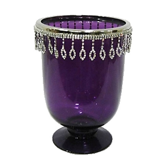 This is a hurricane holder that boasts a sleek and elegant design. It is accented with allover dangling rhinestones for a sparkling effect. This well-crafted holder is an ideal addition to complete any household.