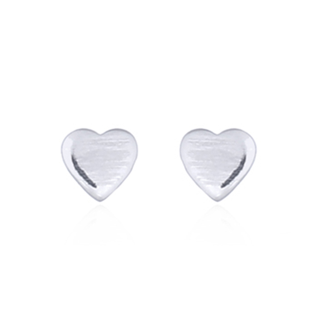 Rhodium Plated Tiny Plain Heart Silver Stud Earrings