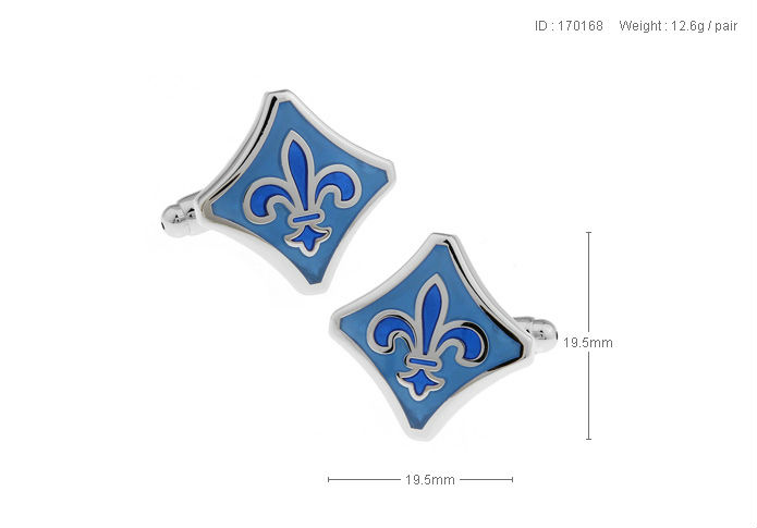Rhombic European classical pattern blue color cufflink.