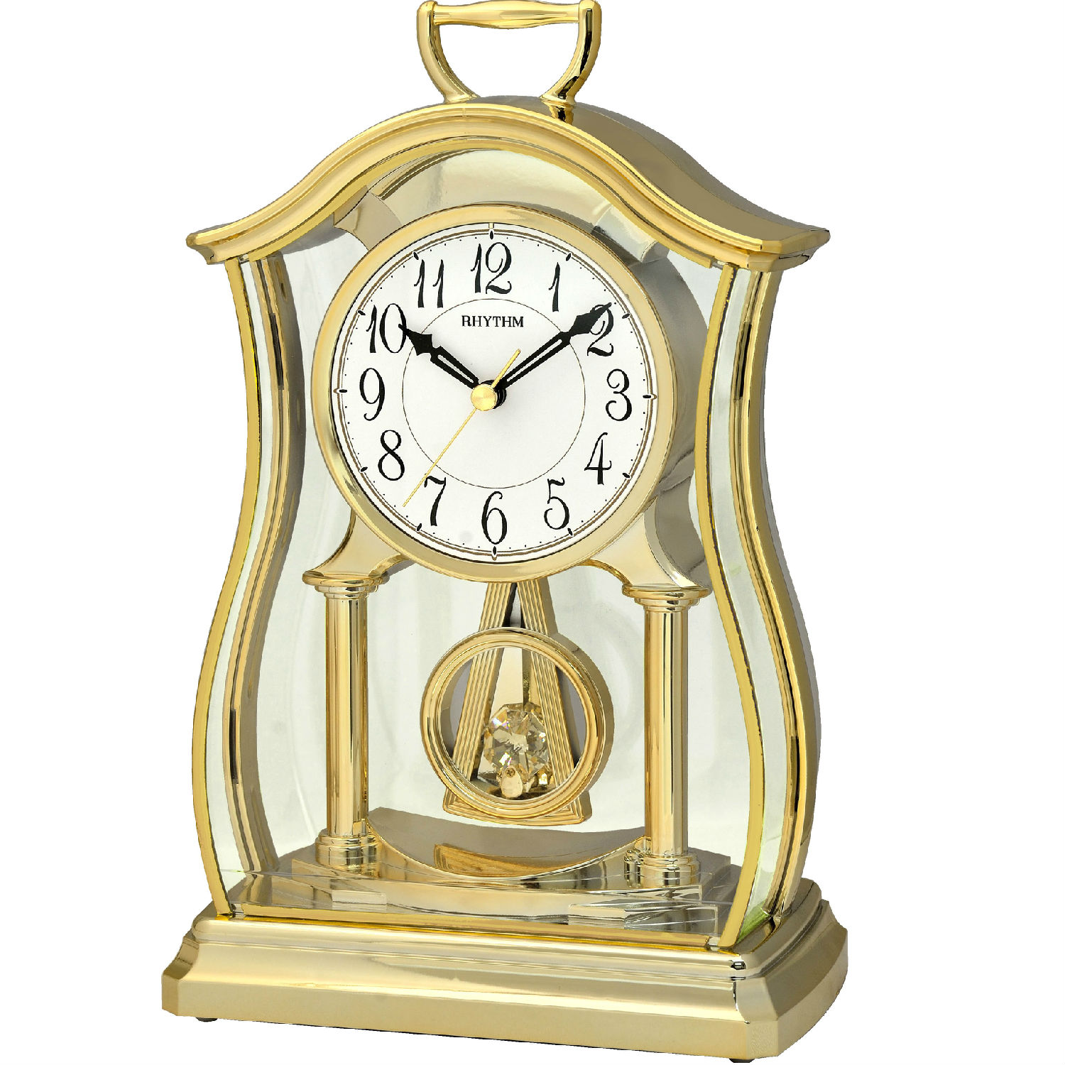 Meeting old-style features with a contemporary look, this charming pendulum clock beautifies your home décor with an antiqued accent. The transparent case boasts an elegantly curved contour characterized by the golden outlines. Completed with large and clear Arabic markers, it offers clear time display for a certain distance.
