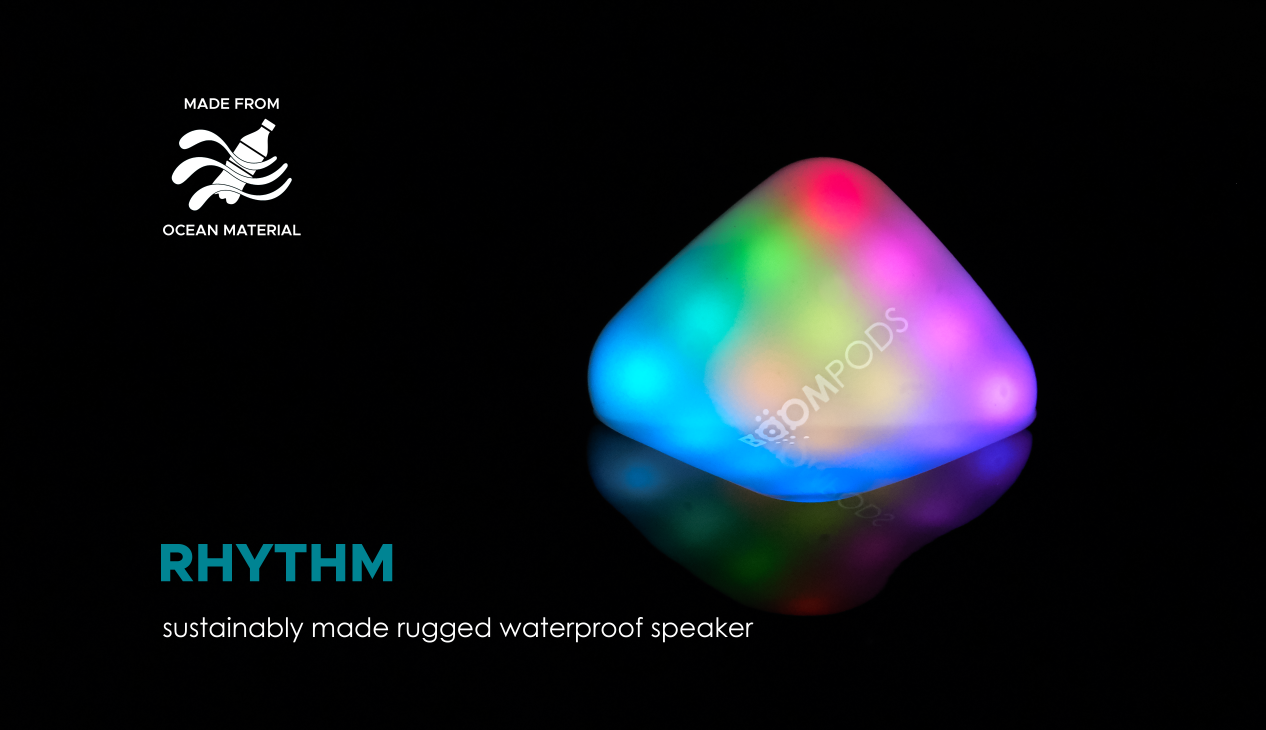 No ordinary speaker. RHYTHM has turned ocean bound plastic into a premium Bluetooth speaker with a difference. The whole side of the speaker lights up and syncs to the beat, creating a fully waterproof portable disco. Free optional App allows you full control over countless lighting configurations and control of the sound via the EQ adjustment. And if your pocket-size DJ wasn’t enough, you can also remotely control your Phone camera to set up the perfect Selfie shot!
