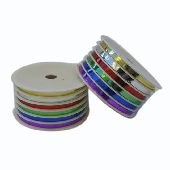This ribbon set includes 6 different colors in a roll. The slim ribbon is in a sharp color with a glossy surface. The nice ribbon is widely applicable in decorative items, gift wrapping and artwork.