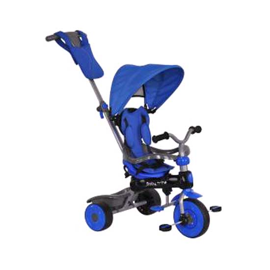 This is a ride-on tricycle with a high back seat. The parental steering handlebar is easy to control. The seat belt is padded for extra comfort when it is worn.