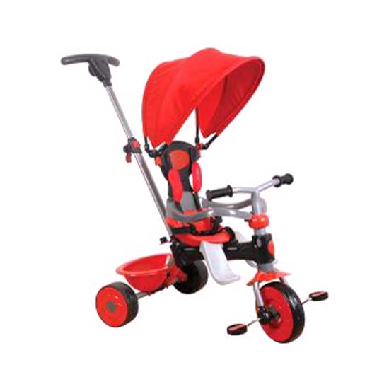 This ride-on tricycle features a parental steering handle. With a seat belt harness and safety bar, this ride-on tricycle guarantees great safety when playing. The canopy design is ideal for shielding sunlight and rain.