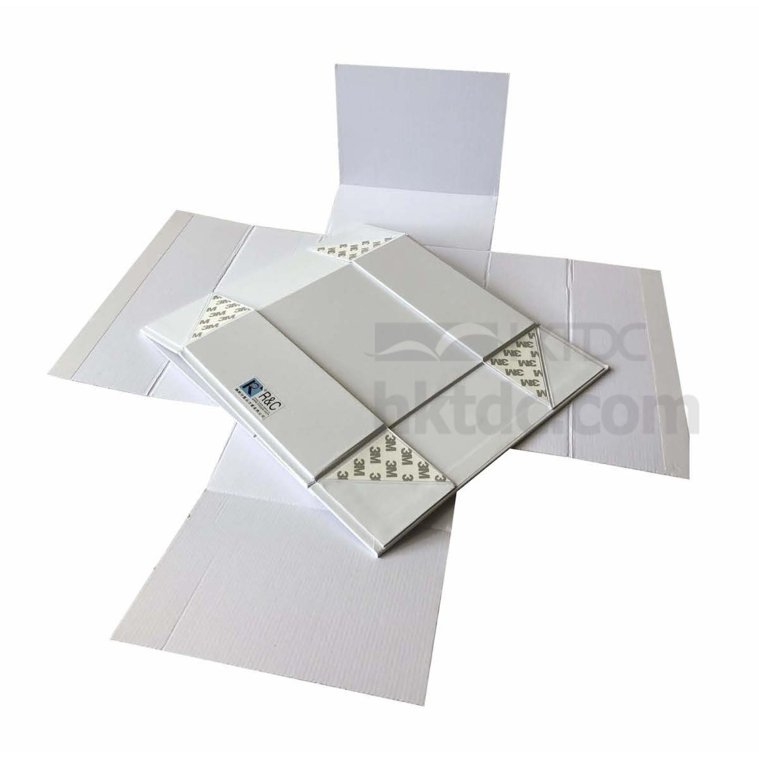 • Inner box: it's foldable rigid box, the trick is at 4 corners where is foldable, but attaching double side adhesive to form the corners when it needs.