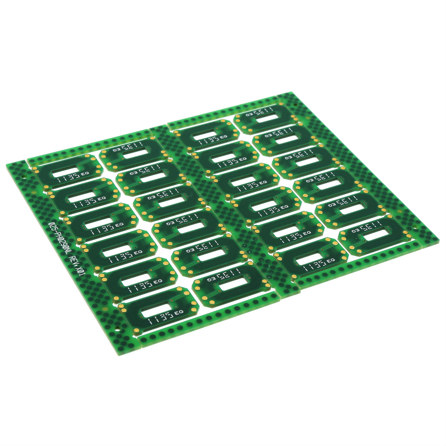 • Solder mask in green.