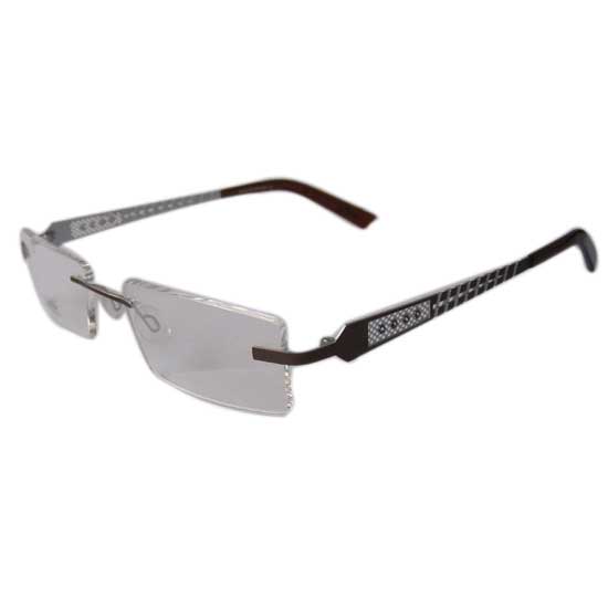 This is a pair of spectacles coming with a rimless frame. The temples are designed in a slim shape with subtle patterns on it. The lightweight structure together with the saddle nose pads ensure comfortable wearing.