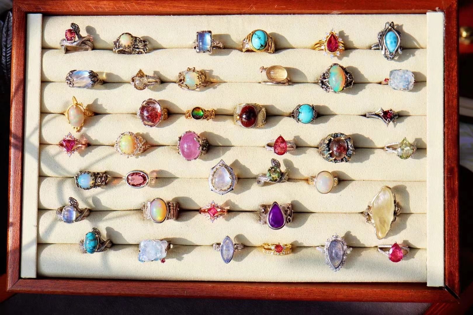 Natural gemstone rings Gem stone rings moonstone Aquamarine Ruby opal Amethyst turquoise charoite beads Citrine Garnet Golden Sun Stone (Oligoclase) Calcentin Korit kunzite Hiddenite Super Seven