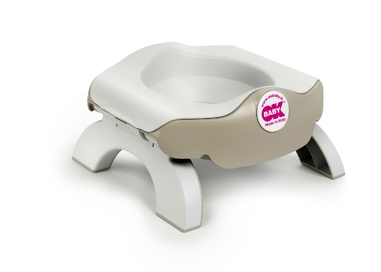 Okbaby new folding and multifunctional potty, 3 functions: Toilet reducer, Regular potty with its collapsible receptacle and Travel potty with its disposable liners which can absorb 300 ml of liquid.