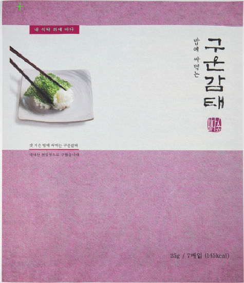 roasted with sesame oil and solar salt (25g/7sheets) It is a type of seaweed which lives only on pure and clean mudflats. It is impossible to cultivate it because it grows only under specific conditions that no human hands can create From collecting through washing and selecting to drying in the sun, all the procedures are carried out only manually ensuring maximum healthiness. It is not only nutritious but also delicious
