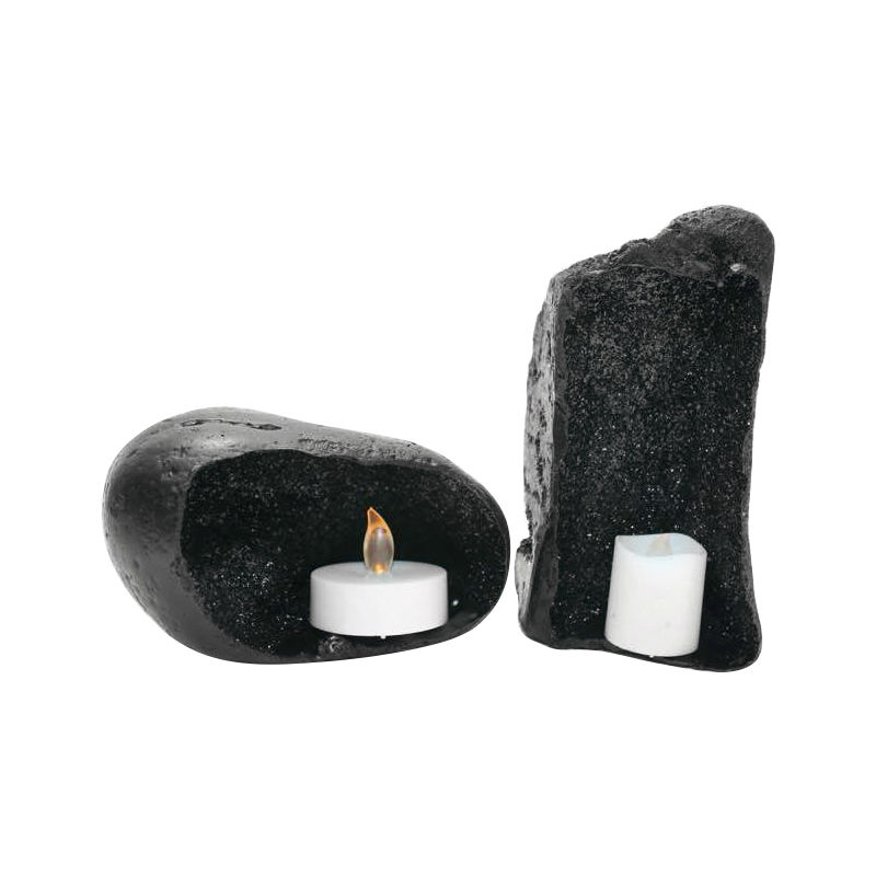 Bring natural power to your work space or any other interior space with these black spinel art pieces. These finely contoured stones function as candle holders with a hollow center. Thanks to the masterful craftsmanship, these delicate pieces mimic the detailed textures and beautiful lines of different shapes of stones for understated class and refinement.