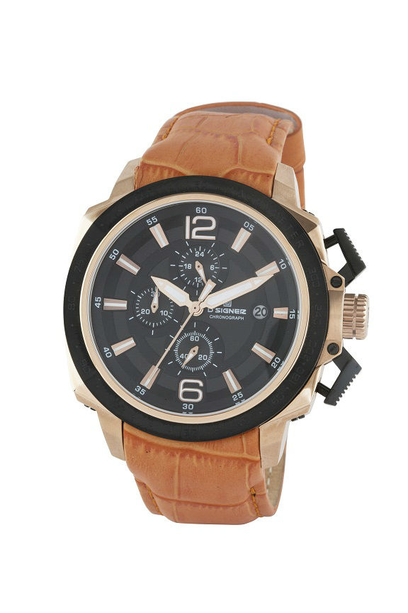 This mens chronograph watch has a stainless steel case and a genuine leather strap. It has a black round dial with 3 sub dials and has bar shaped hour markers. Equipped with a Japan Miyota movement, this watch delivers accurate and reliable performance.