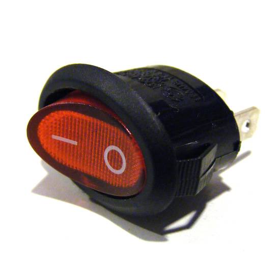 This is a red rocker switch with light. There are large and clear on and off symbols on the switch. It has the contact resistance of less than 30mOhm and the insulation resistance of more than 7MOhm.