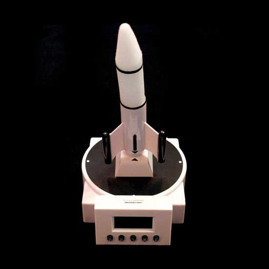 This rocket alarm clock features easy-to-use clock and alarm functions, countdown and flashing light effects, rocket launch, a snooze function and backlight. When the count is up, the rocket launches from its pad and heads for the sky. The rocket launcher alarm clock is a great novelty and perfect gift.
