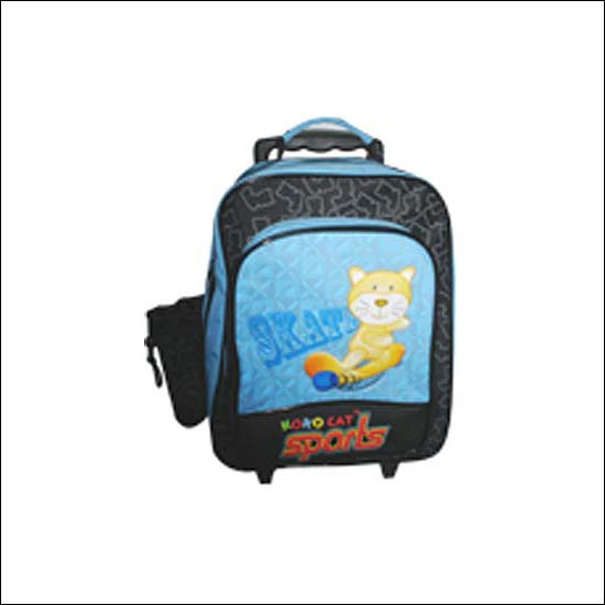 This roller school backpack is a perfect tool for the heavy school load. Designed for children, this backpack flaunts a fun animated cat graphic, with a large main zippered compartment, a front organizer pocket, and a side accessories drawstring pocket for different items. Rollers and an extendable handle are designed for an easier transporting method.