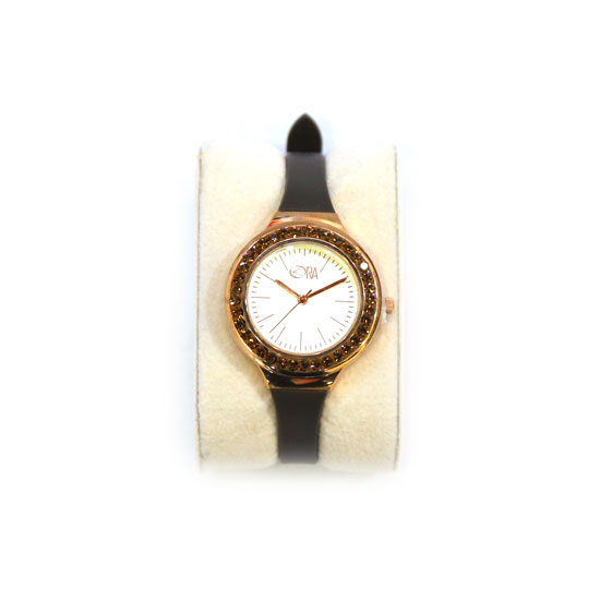 This is an analogue watch exquisitely carved from rose gold. It features 3 hands and simple hour markers to tell the time. It is a must-have item for fashionable people.