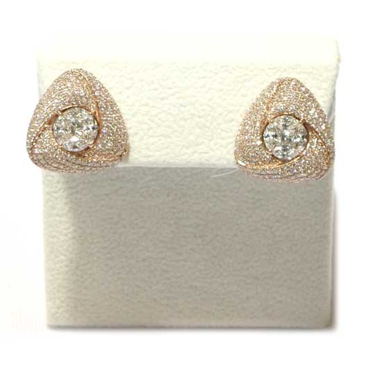 Showcased is a pair of rose gold earrings in rounded triangular shapes. Each is set with allover diamonds that are dazzling. Adorn your ears with these stunning earrings and impress the people around you.