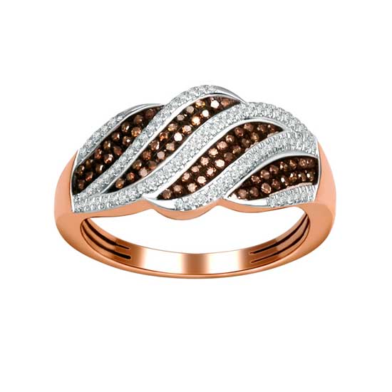 This is a ring with a very luxurious and fashionable design. It is made of 14K rose gold and paved with cognac and white diamonds to present a very royal feeling. Currently, the design is very trendy in the global market.