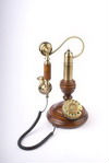 The rotary-dial telephone boasts a nostalgic design in simple black.