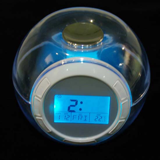 This lovely desk clock comes in a transparent ball shape with a round white ornament on one side. The time-displaying screen with backlight is centered at the ornament. When LED lights are turned on, the lovable clock looks stunning. Decorate your desk with this chic clock.