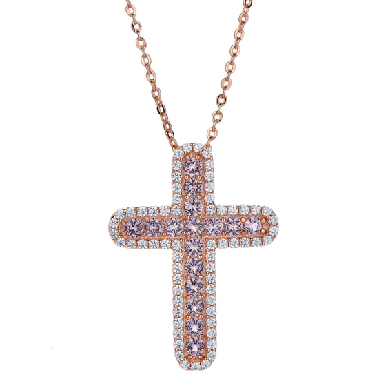 Round Morganite Nano And White Cubic Zircon Silver Pendant With Rose Glod Plating