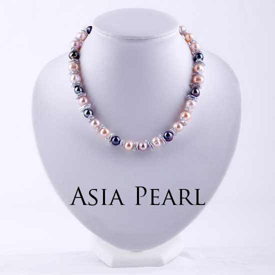 The elegant and classy necklace comes with innovative design and lovely appearance. The necklace features freshwater Keshi pearls in nature and dyed color. From casual to formal settings, this necklace is perfect for any occasion.