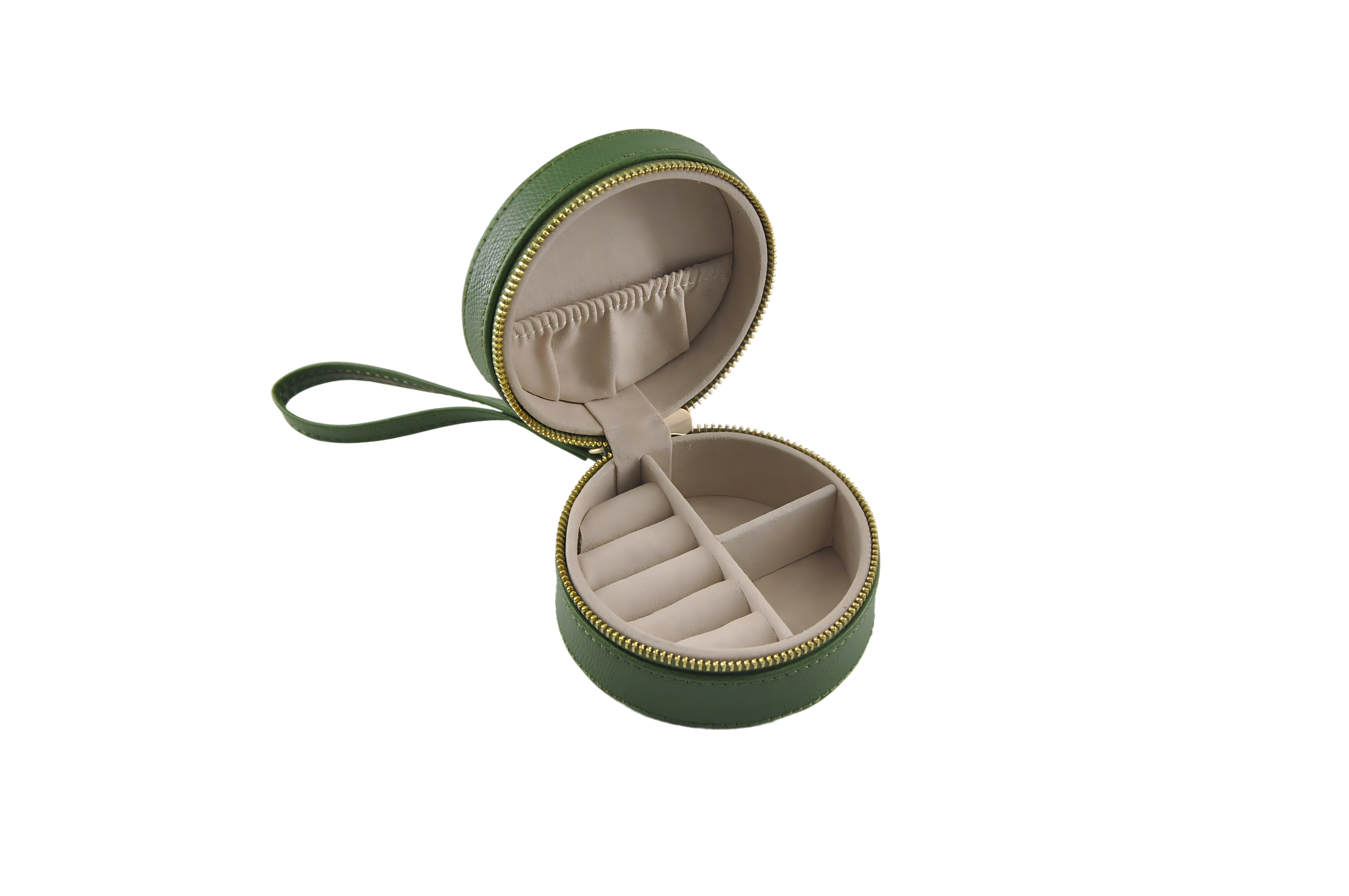 🎁 A stylish round jewelry case designed for portability and premium presentation, ideal for modern jewelry brands.