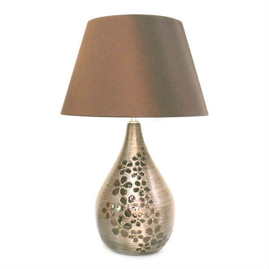 Porcelain Table Lamp with electroplated bronze color and stripes, matching with silk-like shade
