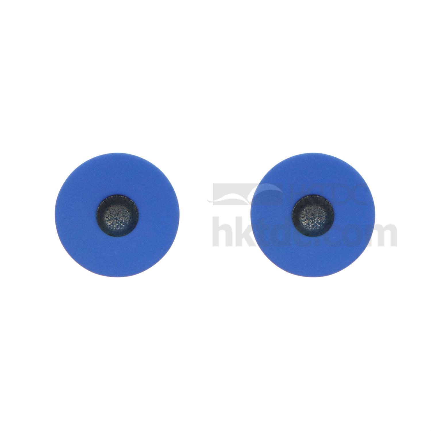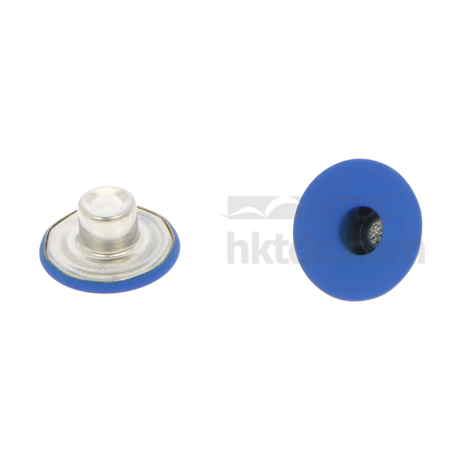 • A metal jeans button coated with rubber.