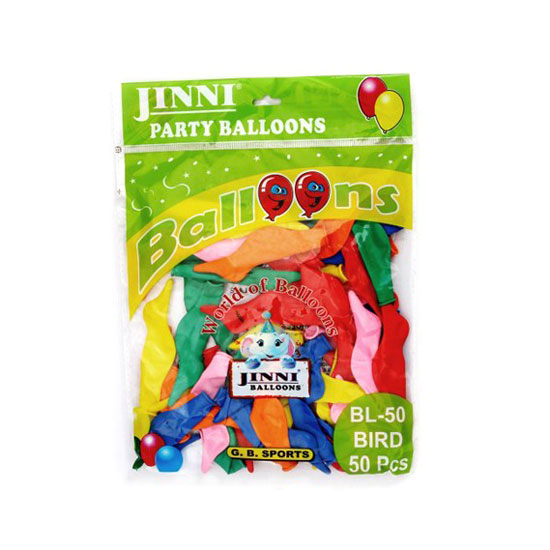 Displayed is a pack of 50 party balloons. They come in assorted colors for you to choose from. This party balloon is a perfect festive item for a birthday party or gathering.