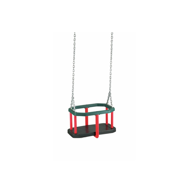 Rubber baby swing 43x29x23cm, HDG chain 5mm, length 1.8m. WARNING! This product is fit for use in commercial playgrounds, both indoor and outdoor. The use of the item is allowed only under continuous supervision by an adult. The product are not suitable for children under 3 years.This product is suitable for individuals weighing up to 50 kg.