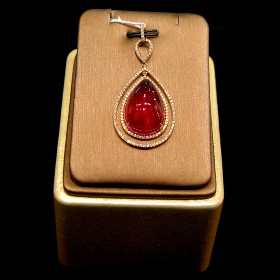 Available here is a pendant designed in sleek beauty. The pendant features a rubellite at the center with a surrounding of twinkling diamonds. This pendant brings out the natural glow in you.