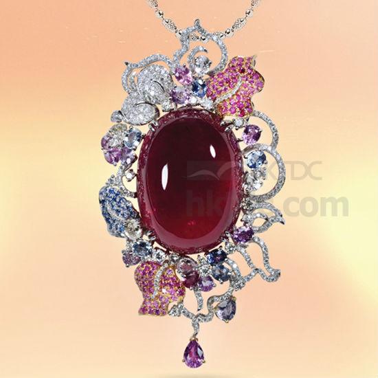 - Material: rubellite 124.05ct, diamond 3.05ct, colorful sapphire 12.78ct.