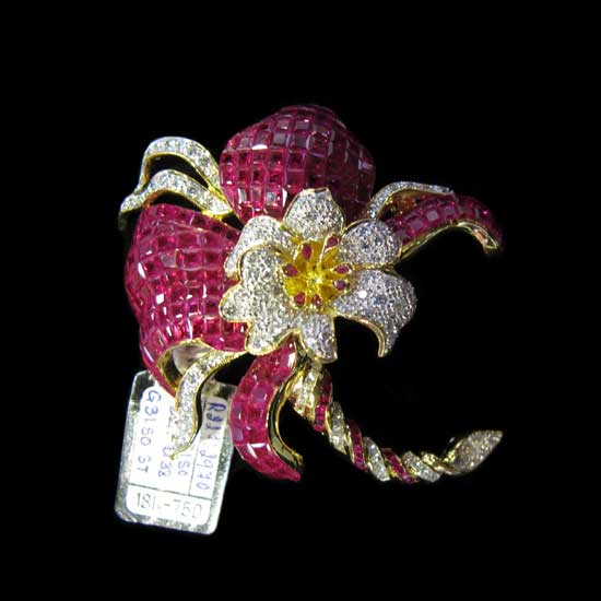 This brooch clutches ladies' heart with its vivid and deluxe orchid design. It is meticulously crafted with high-clarity ruby and shimmering 18K diamond to form a realistic flower appearance. The golden details make this brooch look more streamlined and dainty.