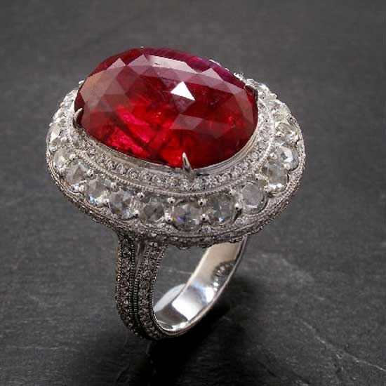 - Rose-cut ruby ring with rose-cut diamonds.