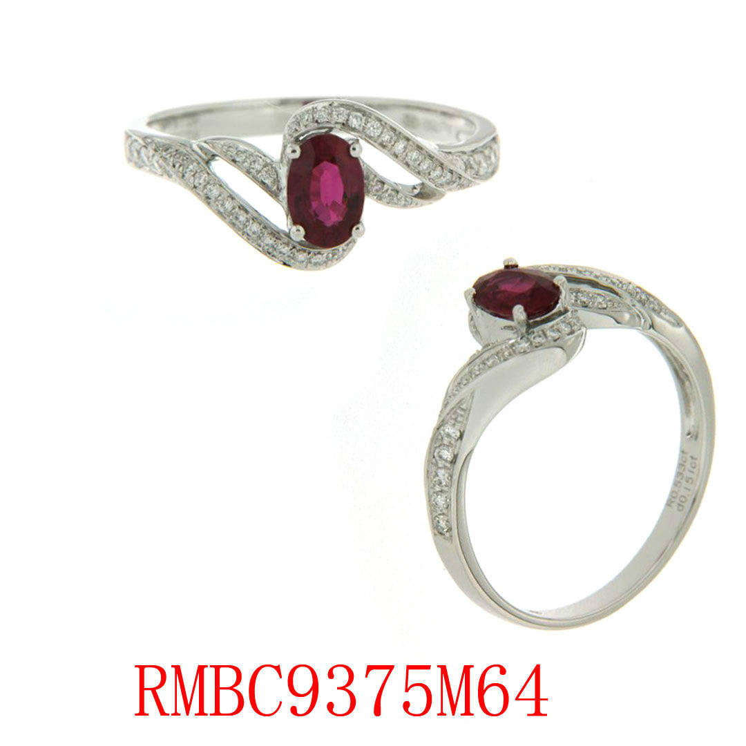 1 oval shape ruby-0.701ct, 44 round diamonds-0.160ct, 18K white gold 2.18gm