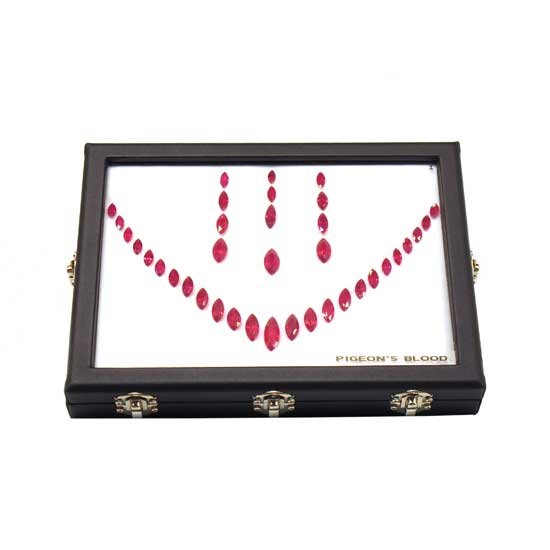These loose ruby stones feature a marquise-cut design. The alluring ruby stones showcase a bright pigeon blood color. The stunning ruby stones will enhance the charm of any jewelry design.