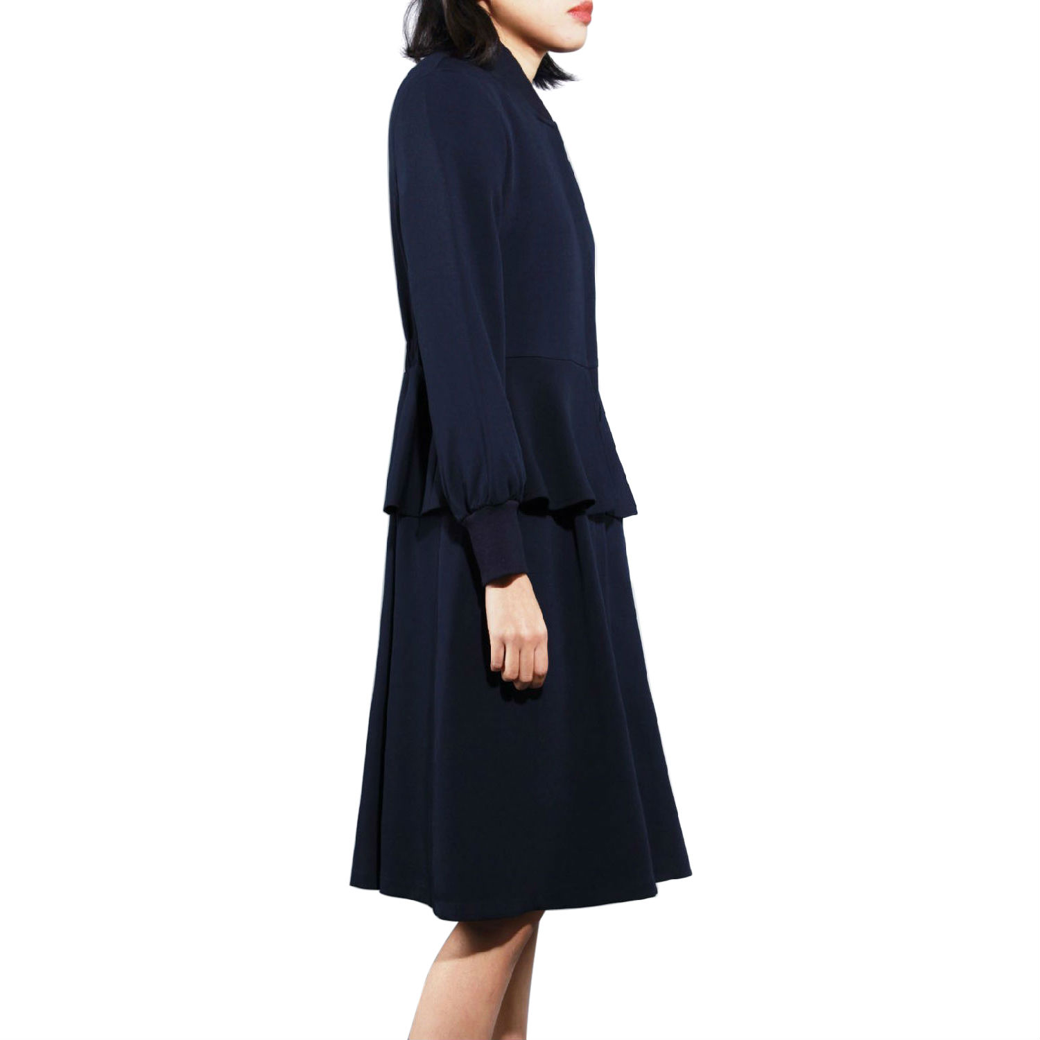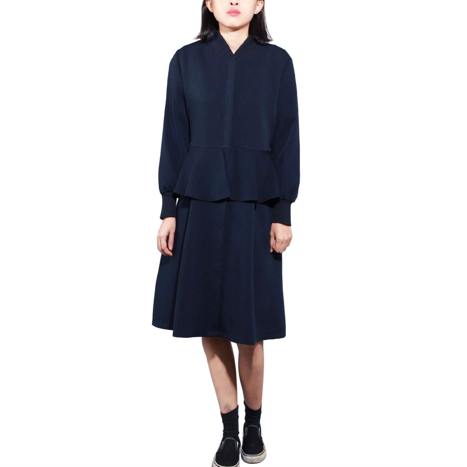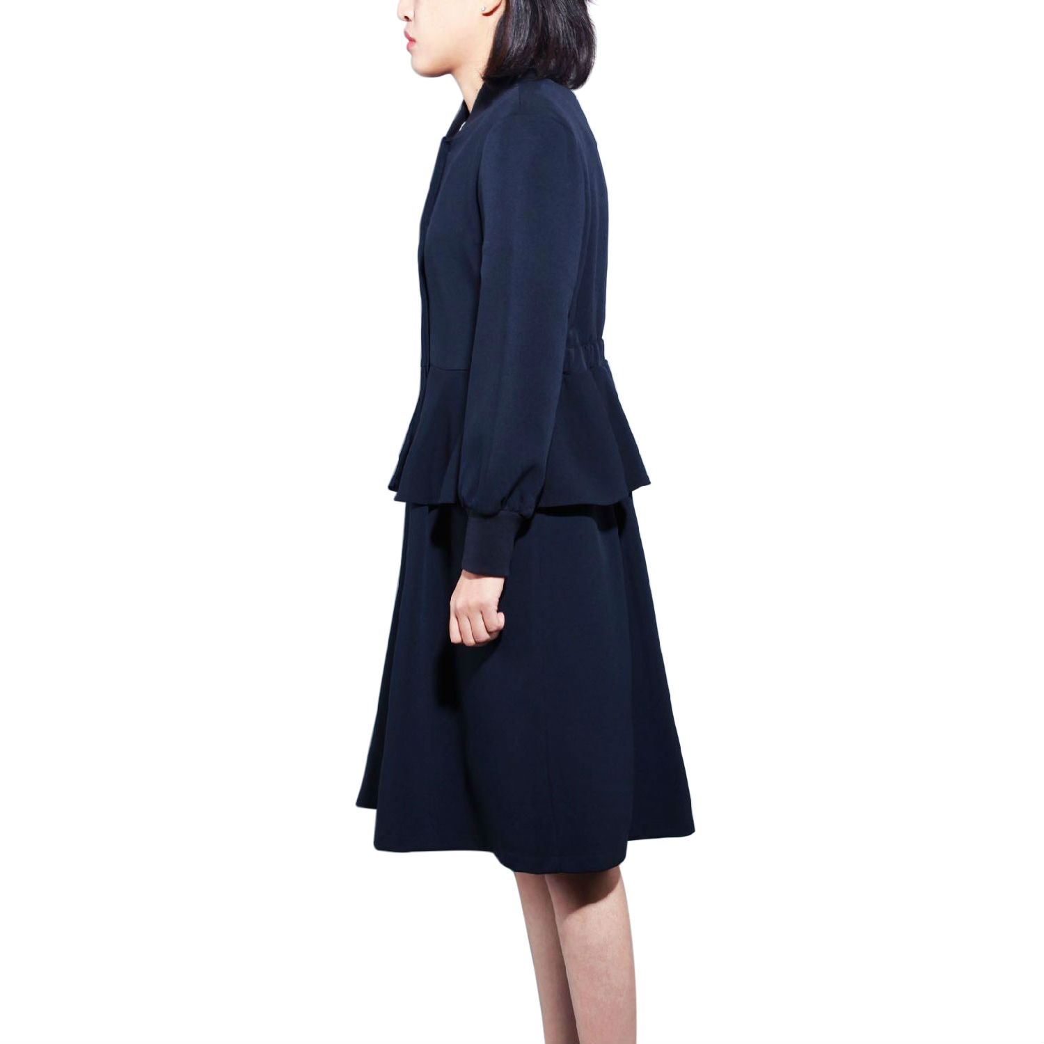 An elongated edition of a baseball-style jacket, this knee-length outer piece gives an elegant twist with an A-lined flair bottom. The elastic back slightly defines your waistline while the ruffled trims mimic a layered look for a flattering appeal. Boasting a hint of feminine aesthetics, this jacket offers a wonderful styling choice for both office and leisure outfit.