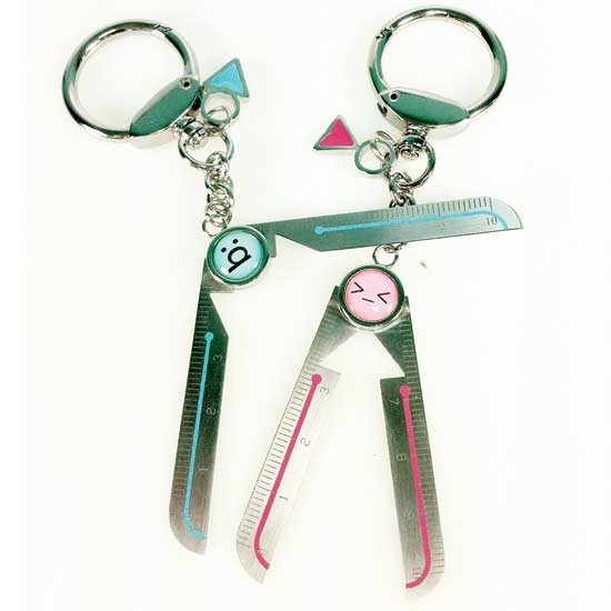 Constructed of brass and stainless steel, this key chain is produced with a folding ruler for user's convenience. It is decorated with a cute emoticon that delights both kids and adults. This multi-purpose key chain is a fancy, practical gift for everyone.