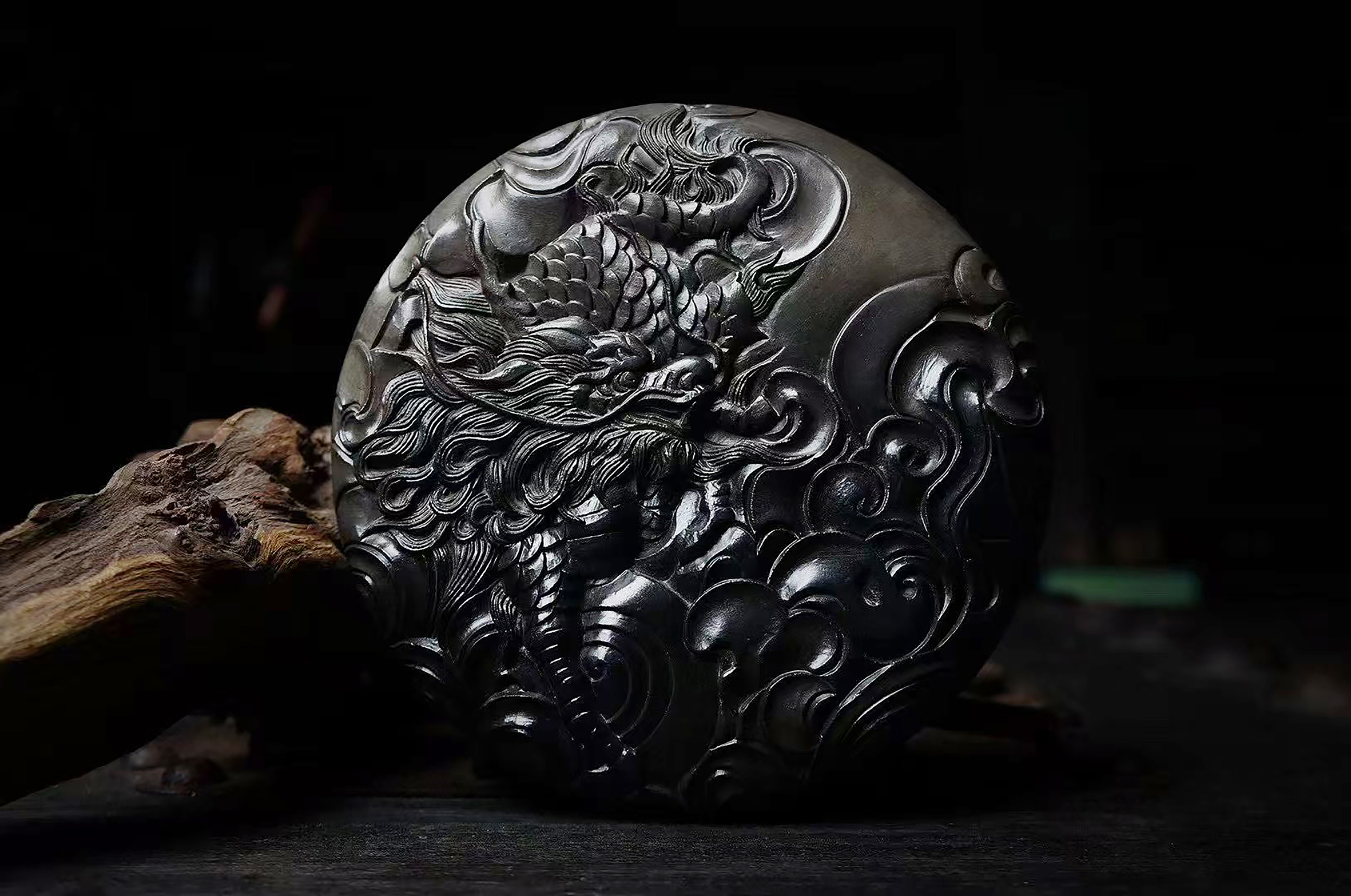 The "Junlin Tianxia" inkstone integrates the auspicious Qilin beast with cloud patterns. As the supreme of the Four Spirits, the n symbolizes flourishing literary talent, noble virtue, and enduring blessings; the cloud patterns embody the aspirations of "stepping on clouds to rise high" and a bright future. th the Qilin treading upon the clouds, it exudes a magnificent demeanor, embodying the beautiful wishes for flourishing literary success, a thriving career, and blessings filling the world. Thire inkstone features a grand and brilliant design with exquisite carving; the cloud patterns flow naturally, and the Qilin is vividly lifelike. Its color is a rare ick hue found in Chengni inkstones, making it a truly exceptional masterpiece!