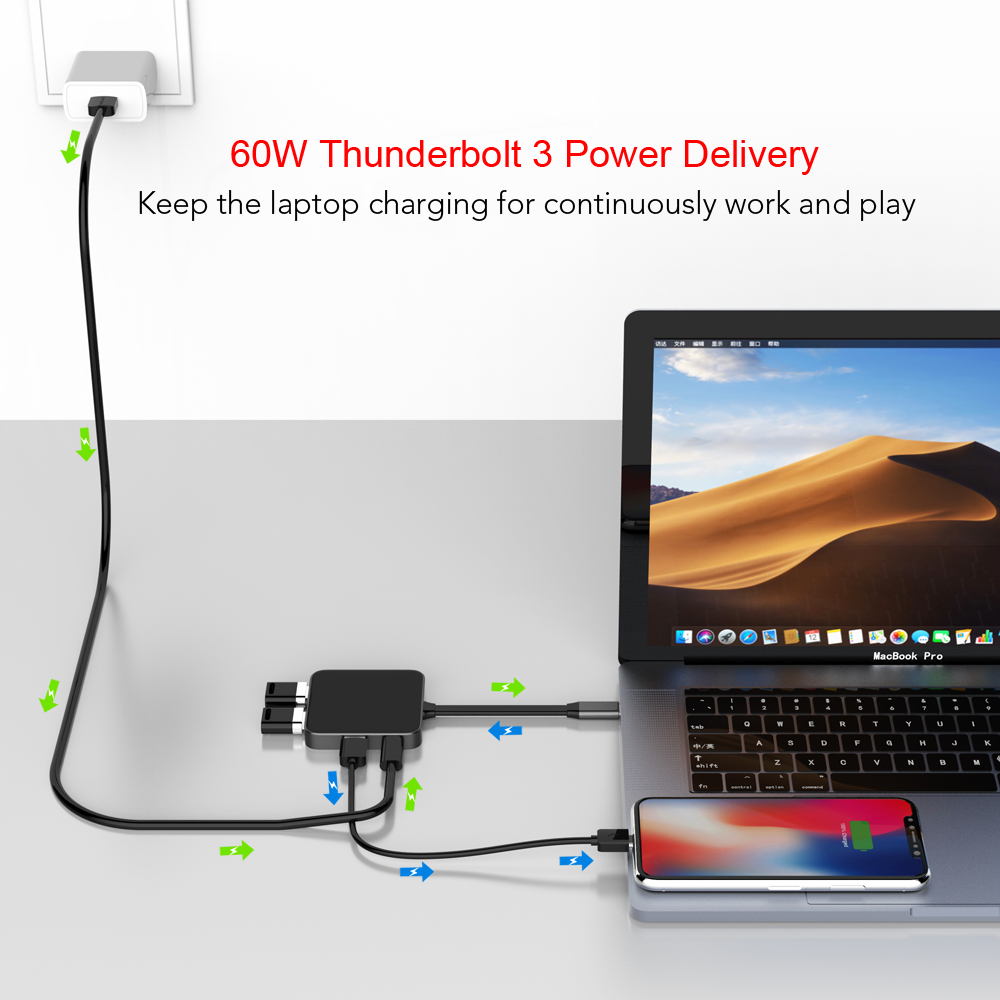 3 x USB 3.o, data transfer speed up to 5Gbps, 5v/2A power charging to your phone and tablets