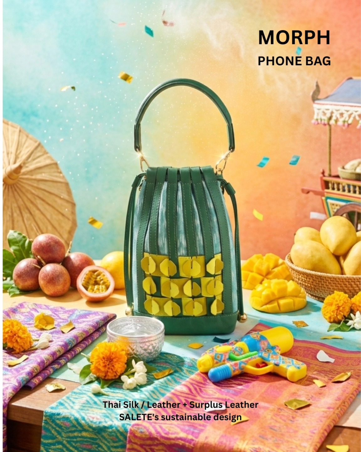 The design draws inspiration from the Sabai, a traditional Thai shawl, and elements of local architecture, creating a distinctive and elegant form that bridges heritage and modern aesthetics. A refined blend of culture and style, the Salete Bag is crafted for both local and global stage, designed for those who appreciate meaningful craftsmanship with a modern edge.