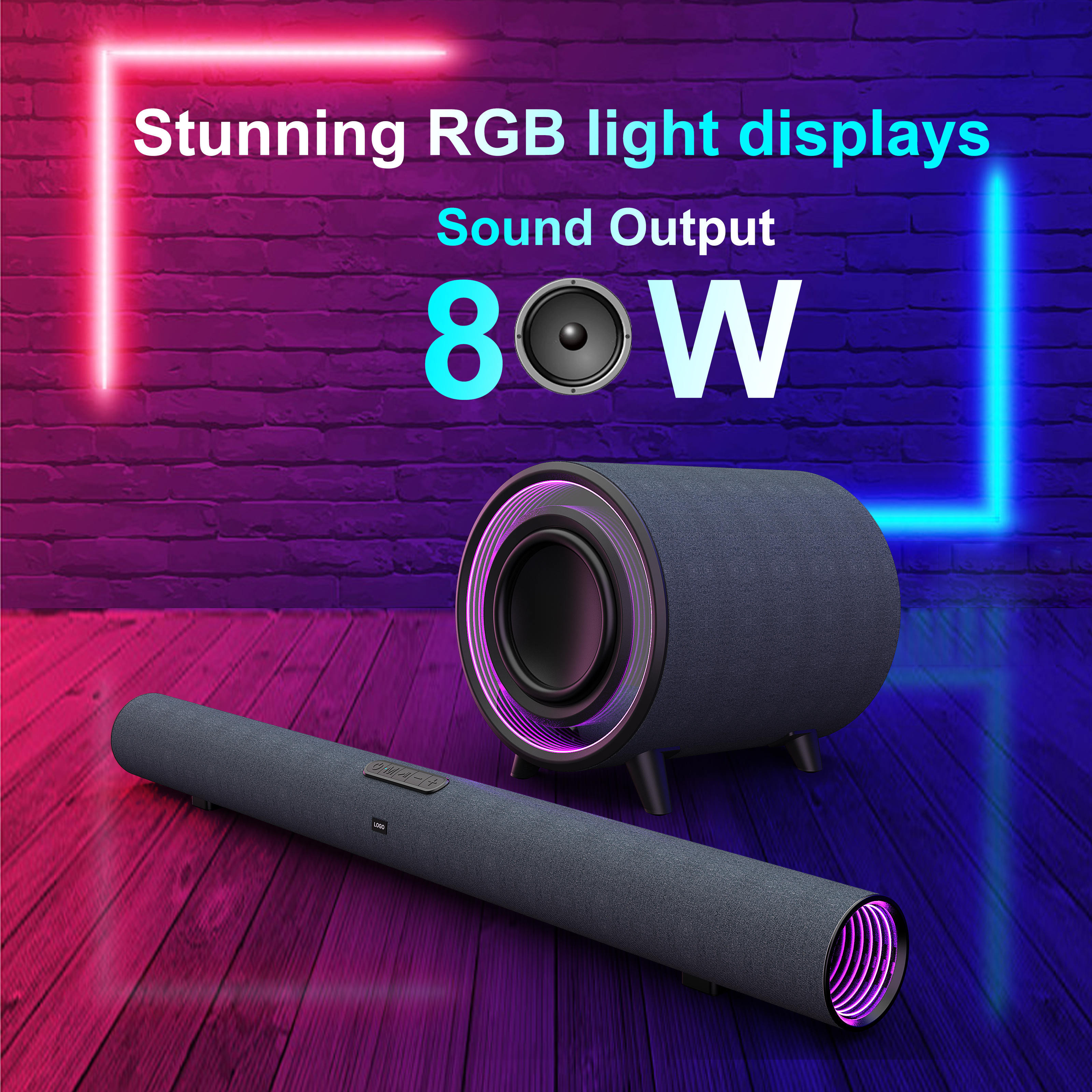 -80W Powerful 2.1 Channel Audio: 30W soundbar + 50W subwoofer deliver immersive, high-fidelity sound for movies, games, and music.