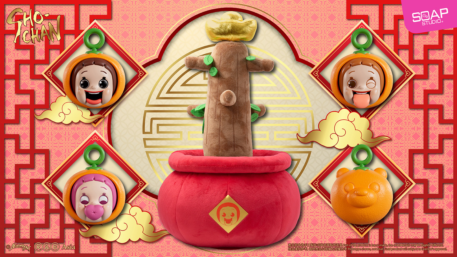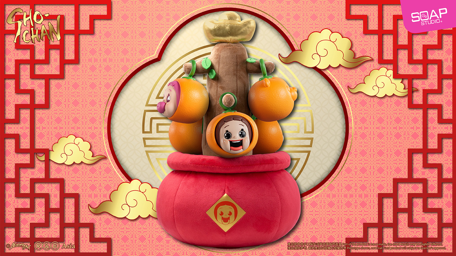 Inspired by the traditional Chinese New Year kumquat tree, the SHO-CHAN Five Blessings Harmony Figure integrates the unique designs of SHO-CHAN and KUMA, bringing an abundance of festive cheer and blessings to your home. The base and branches are crafted from soft plush material, while the vibrant red base, featuring SHO-CHAN's adorable face, adds to the festive ambiance and offers a warm touch.