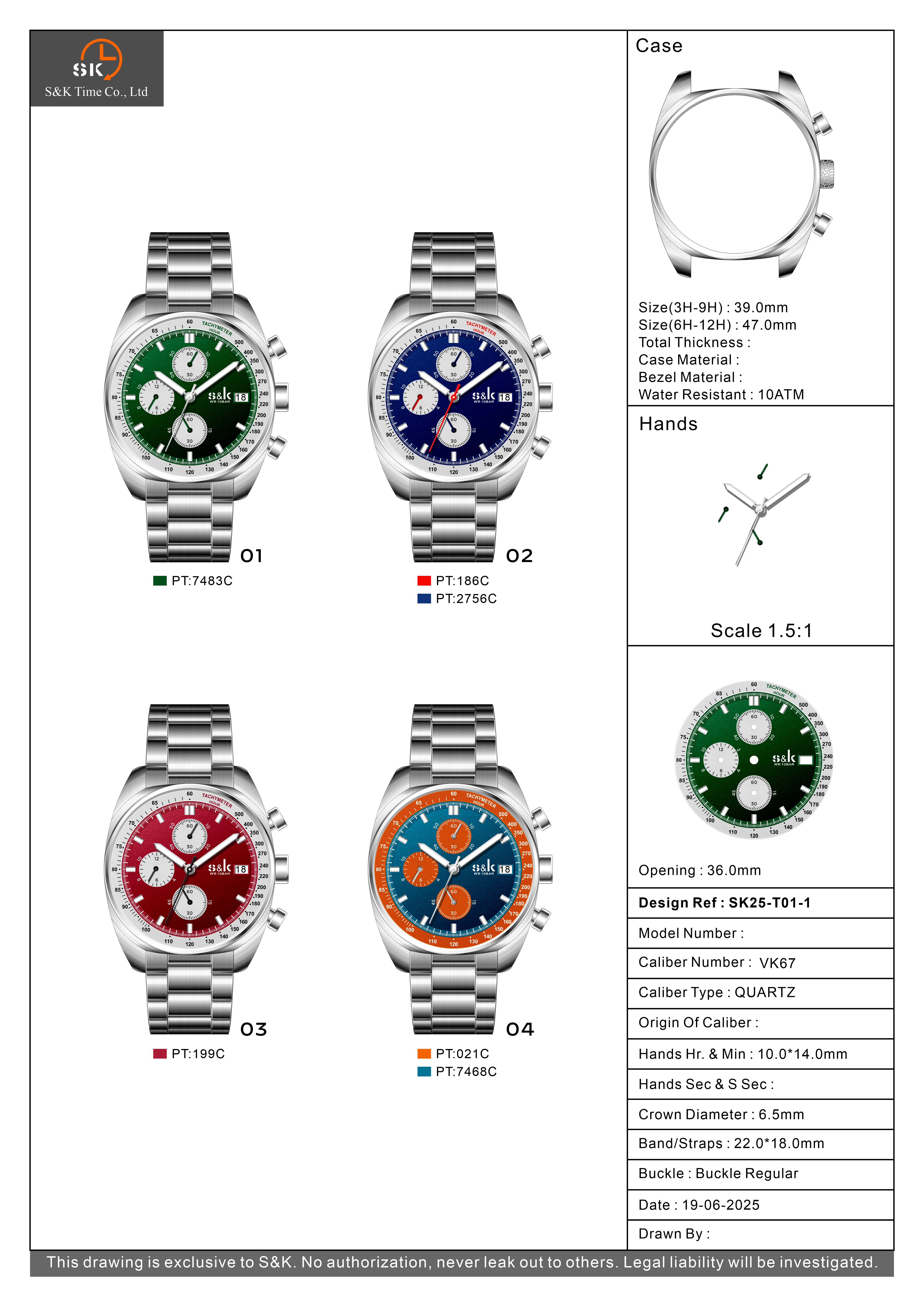 316L stainless steel with slope inner ring, TMI VK64 movement, 316L stainless steel bracelet or silicon strap, 10ATM