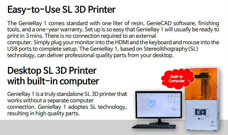 - Easy-to-Use Desktop SL 3D Printer with built-in computer